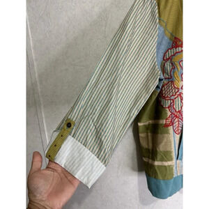 Womens Cardigan Bomber Jacket Mix Media Print Multicolor Print Artsy Boho LARGE