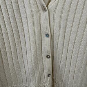 Womens Cardigan Cream Knit Layered Button Up 3/4 Sleeve Clean Girl Cottagecore