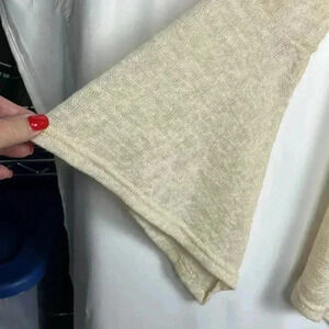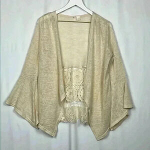 Womens Cardigan Cream S Waterfall Open Front Bell Sleeves 14” Lace Border EUC