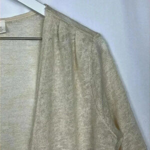 Womens Cardigan Cream S Waterfall Open Front Bell Sleeves 14” Lace Border EUC
