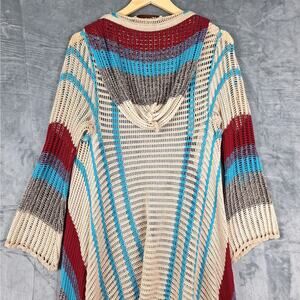 Womens Cardigan Medium Boho Crochet Fringe Hippie Festival Asymmetrical Duster
