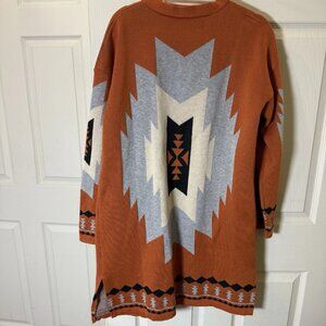Women’s Cardigan Open Duster Southwestern Aztec Tribal Size L Long Sleeve