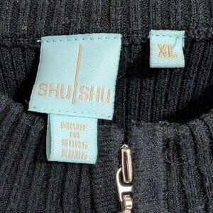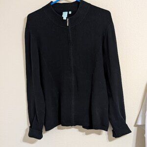 Women's Cardigan Sweater – Shu Shu, XL, black zip up.
