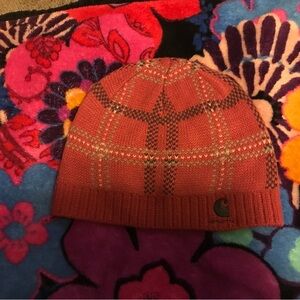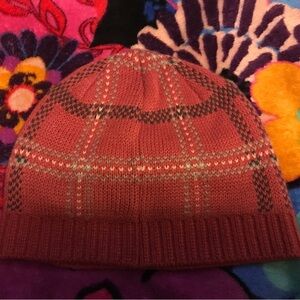 Cozy knit beanie with a plaid pattern. Perfect for chilly days. One size