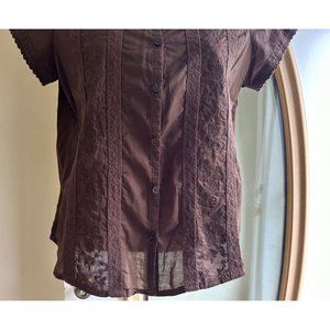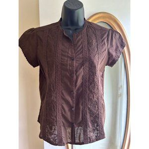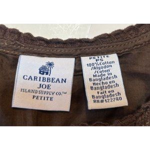 Women's Caribbean Joe Top Size Petite Small Brown Embellished Side Slits