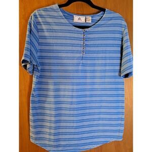 Add this Beautiful Blue and White Stripe Top to your wardrobe. Size L great for travel, business, and casual.