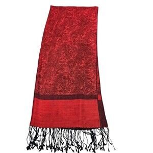 Womens Cashmere Silk Pashmina Red Paisley Scarf Wrap Shawl Stole Fringe 68x26
