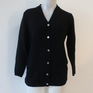 Womens Cashmere Sutton Studio Black V-Neck Pure Cashmere Cardigan Sweater S