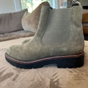 Water resistant Chelsea boot in olive green suede. Gently worn 1 season and in great condition!