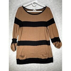 Womens Caslon Sweater Tunic Striped Pullover Women Size Medium Brown Roll Tab