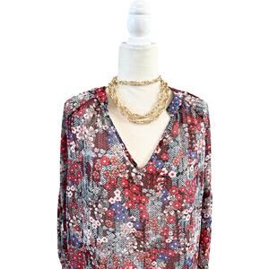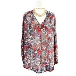 Women's Casual Boho Floral Print V-Neck Long Sleeve Blouses XL