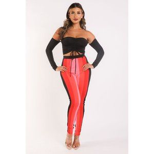 Women's Casual Color Blocked Leggings And Matching Off Shoulder Top Outfit Set