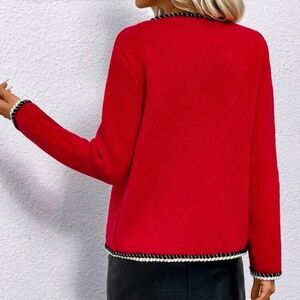 Women's Casual Colorblock Trim Bow Decor Cardigan, Autumn/Winter