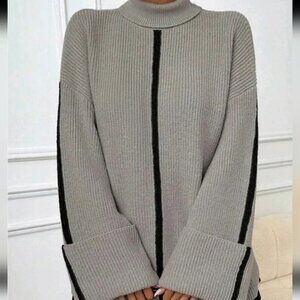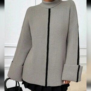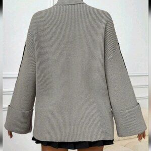 Women's Casual Contrast Color Fold Cuff Turtleneck Sweater, Autumn