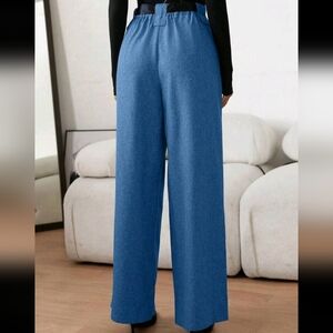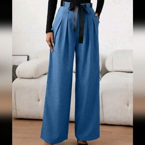 Women's Casual Contrast Color Waistband Pleated Long Pants, Loose Fit For Spring