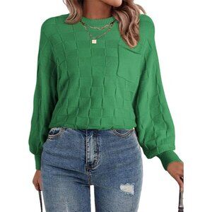 Women's Casual Crewneck Long Sleeve Lightweight Checkered Knit Pullover Sweater