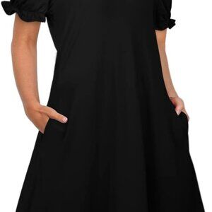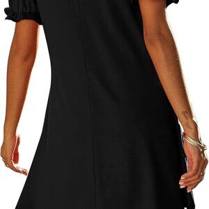 Feature: Sexy v neck tunic dress, short puff sleeves, with two side pockets, flowy hem and fashion solid color.
