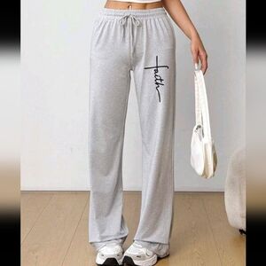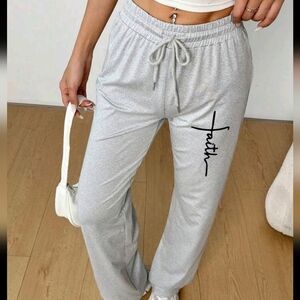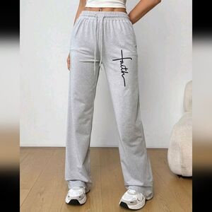 Women's Casual Flower & Letter Print Grey Sweatpants