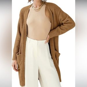 Women's Casual Long Sleeve Open Front Fuzzy Cardigan Sweater with Pockets small