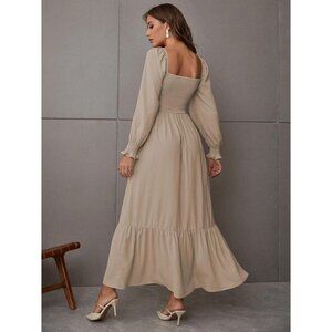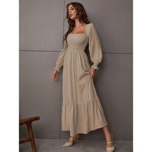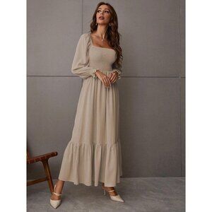 Women's Casual Maxi Dress Square Neck Long Sleeve Ruffle Shirred Flowing