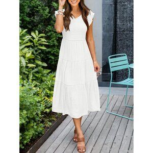 Women's Casual Midi Dress Rayon V Neck Flutter Sleeve Tiered Beach Vacation