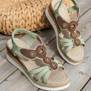 Women's Casual Roman Style Beaded Straw Rope Sandals With Wedge Heels