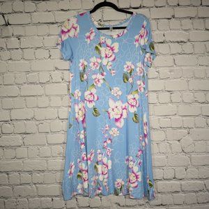 Women's Casual Short Sleeve Crew Neckline Dress w/ Pockets - Blue Floral