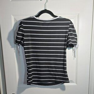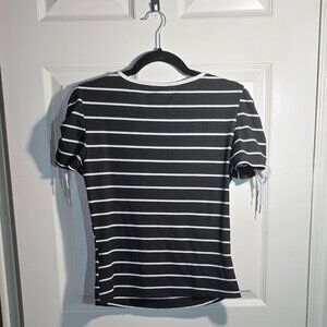 Fun top for Spring and/or Summer. Both sleeves have white bowties and black and white stripes.