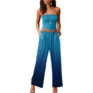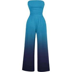 Women's Casual Summer Strapless Jumpsuits Blue Gradient