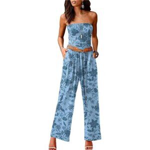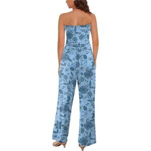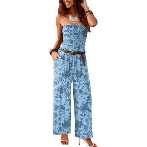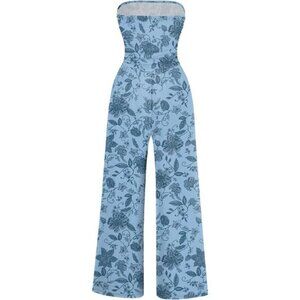 Women's Casual Summer Strapless Jumpsuits Blue Print