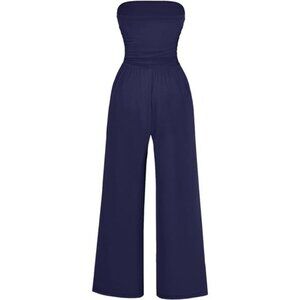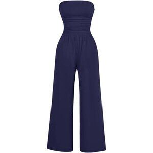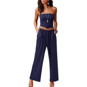 Women's Casual Summer Strapless Jumpsuits Navy Blue