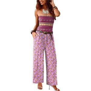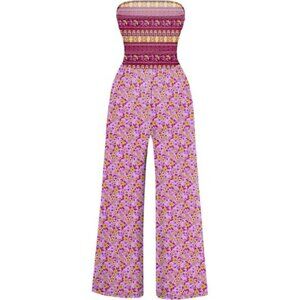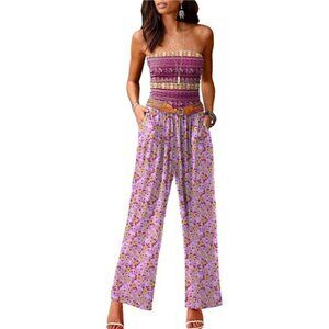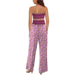 Women's Casual Summer Strapless Jumpsuits Purple Print