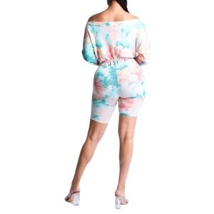 Women's Casual Tie dye Mask & Off The Shoulder 3/4 Sleeve Romper Set