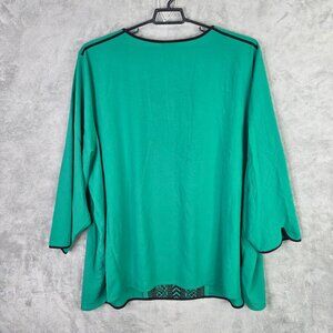 Womens Catherines Green Tunic Top Black Embellished Panel & 3/4 Sleeves Size 5X