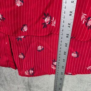 Womens Catherines Red Floral & Stripe Blouse Button Up 3/4 Roll-Tab Sleeves 6X