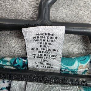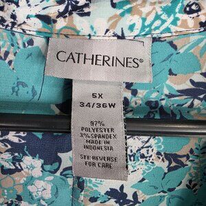 Womens Catherines Teal Blue Floral Print Blouse Button-Front 3/4 Sleeves Size 5X