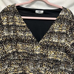 Women's Cato 18/20W V- Neck Geometric Print Top 3/4 Sleeve Pullover Stretchy