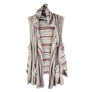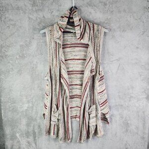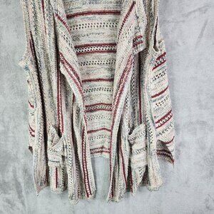 Womens Cato Beige Red Striped Open Knit Sleeveless Cardigan Vest Acrylic 22/24