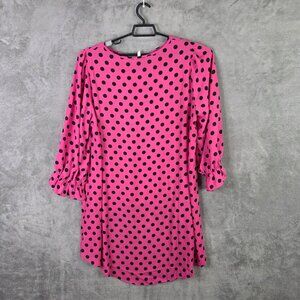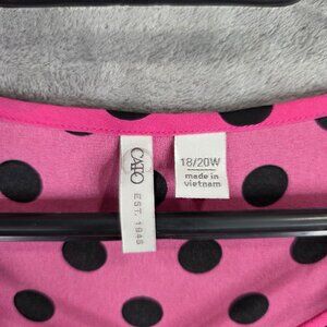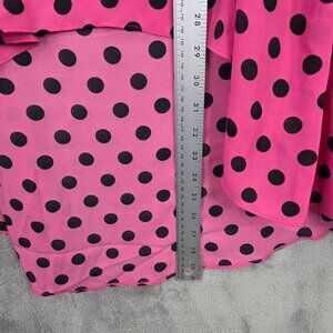 Womens Cato Pink & Black Polka Dot High-Low Blouse 3/4 Ruffle Sleeve Size 18/20W