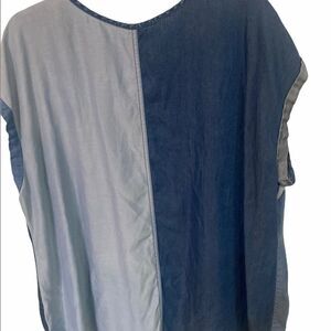 Women’s Cato Retro Patchwork Chambray Denim Top • Size 22/24w • Shades of Blue