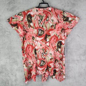 Women's Cato Ruffle Front Top Blouse Abstract Print V Neck Short Sleeve Size L