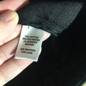 Measurements: Waist is 34 inches. Length is 21 inches. Material is 73% cotton, 26% polyester, 1% spandex.