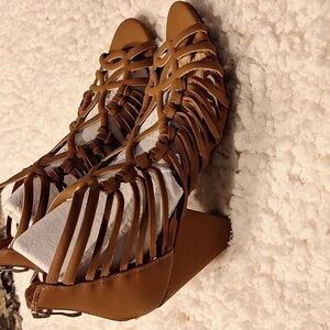 Womens Cato Strappy Brown Zipper Sandals Size 7. NWOB