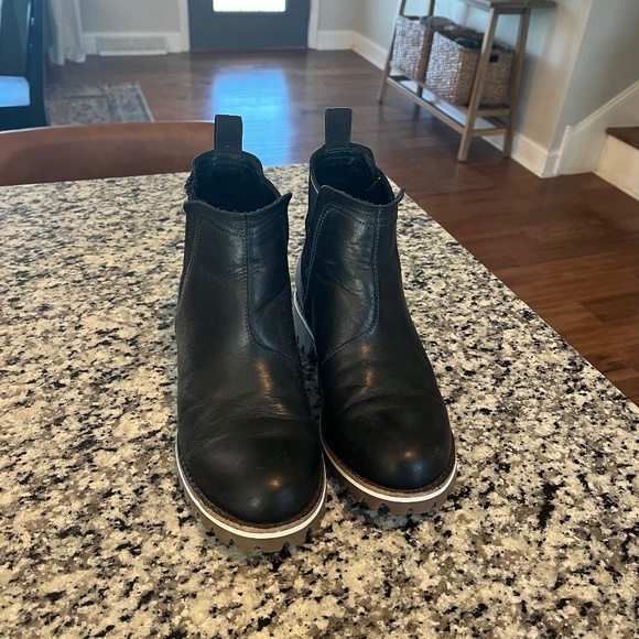 Black chelsea boots by Chacos. Size 7.5. They are waterproof leather and very comfortable.