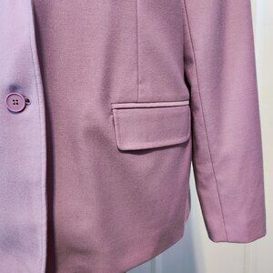 This Women's Chadwick's Lavenderish Lined Wool Blazer in size 14 is a classic, vintage-inspired jacket with a two-button closure and a notch lapel.