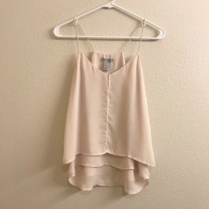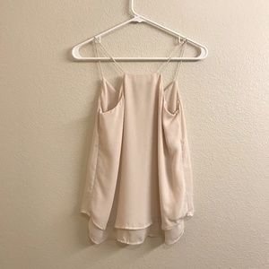 Women's Champagne Flowy Chiffon Panel Overlay Strappy Cami Top In Size 2