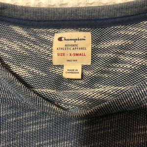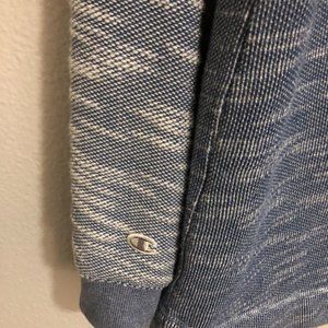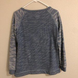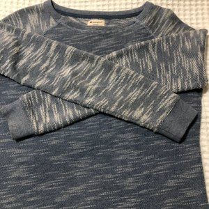 Blue/white fabric-raglan sleeves are contrasting with more white than blue