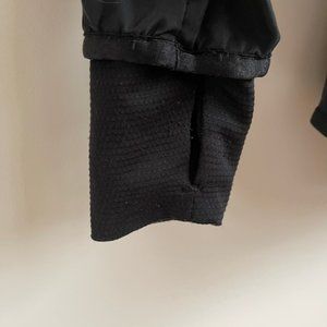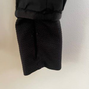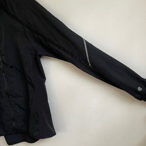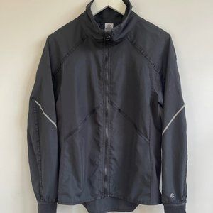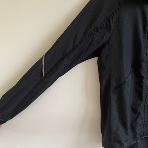 This is a women’s size Small athletic running jacket. It is in excellent new condition. It has thumb holes for cold mornings and has a medium size pocket On the back of the jacket. It also has reflective tape on arms and on back.