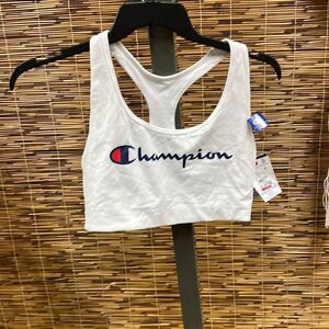 Women's Champion Authentic Sports Bra, Classic Script Logo (Plus Size) White 2X