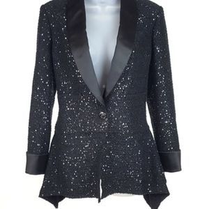 Sequin Embellishments & Satin Shawl Collar
